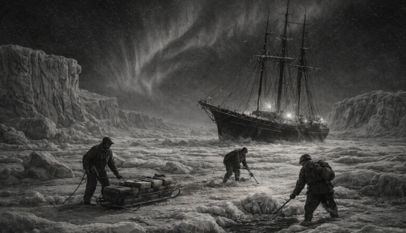 Durante semanas, la oscuridad fue total. No había amaneceres. No había atardeceres. Solo una noche interminable rota por auroras australes y el crujido constante del hielo alrededor del casco.