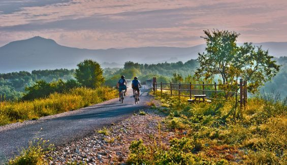 rehabilitadas, alojamientos y empresas de actividades complementarias que alquilan bicicletas y vehículos a pedal, así como numerosas áreas de autocaravanas y pernocta.