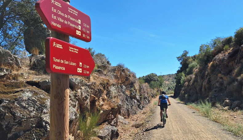En el año 1896 nació una “nueva Vía de la Plata” destinada a los usos y ciudadanos de la época, cuando fue inaugurada una esperada línea de ferrocarril entre Plasencia y Astorga que estuvo en funcionamiento hasta el 31 de diciembre de 1984. La demanda de nuevas infraestructuras para el ocio recreativo y el turismo activo mediante la creación de itinerarios culturales restaurando antiguos caminos históricos ha puesto en valor el viejo ferrocarril como vía verde, recuperando varios tramos en Cáceres, Salamanca y Zamora en la red nacional de Caminos Naturales que facilitan la posibilidad de crear un interesante itinerario para bicicletas de gravel que se puede hacer en una jornada en plan “machaca” o con las bolsas de bikepacking en un par días.