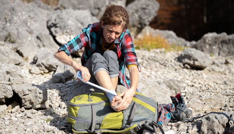 De todos es conocido que los parches con gel coloidal (tipo Compeed) son muy eficaces, pero no siempre los llevamos, quizá porque la actividad implica caminar poco o porque su envase ya se quedó vacío en nuestra mochila hace tiempo y no nos hemos percatado. Las cintas o vendas autoadhesivas para ampolla son mucho más económicas como medida preventiva y también multifuncionales: aparte de protegerte de rozaduras o acolchar una zona dolorida (por ejemplo un ojo de gallo o dureza en un dedo del pie), poseen mayor flexibilidad, permanecen más tiempo en la piel sin despegarse o arrugarse y ofrecen más elasticidad que el esparadrapo. Te permite reparar de emergencia un corte en tu chaqueta de plumas o saco de dormir, tapar una perforación en la cubeta de tu mochila o forrar la empuñadura demasiado deslizante de un bastón. Cuestan de 4 a 10 euros y por lo general miden 2,5 metros de largo y tienen 3 centímetros de ancho.