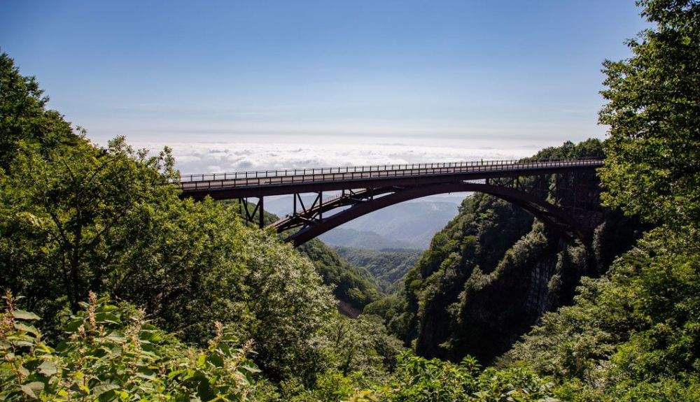 Cambiamos las carreteras amables y llanas de la costa por los desniveles exigentes de la montañosa zona central de Fukushima: la cordillera de Azuma es muy popular entre los ciclistas de carretera para entrenar subidas a puertos, y la ruta que os proponemos ascender al puerto de Jododaira a través de una exigente ruta circular de 77 km que sigue el skyline hasta alcanzar una altitud máxima de 1.622 metros, ofreciendo unas vistas impresionantes de las montañas de alrededor. Puedes elegir el recorrido dependiendo de tu nivel, o por Tsuchiyu Onsen, con un desnivel más moderado por encima de los 1.500 m o por Takayu Onsen, con una distancia más corta pero un desnivel mayor. A 1.300 m se encuentran el onsen de Tsuchiyutoge y otros muchos típicos alojamientos donde se puede pasar la noche. Durante la ascensión es obligatorio hacer una parada en el puente de Fudosawa, con una espectacular panorámica sobre la ciudad de Fukushima y el valle de Tsubakuro, que en otoño se viste de colores ocres, nartanjas, rojizos, creando una imagen de postal. La siguiente parada es "Tengu no Niwa", también un lugar famoso para observar las laderas de colores de las montañas extendiéndose en la distancia. Y poco después de pasar este punto, en una pronunciada curva de la carretera que asciende en zig-zag, pasamos a otro paisaje completamente diferente: desaparecen los bosques y ante nosotros sólo tenemos un horizonte rocoso y alpino, propio del terreno volcánico de la cordillera de Azuma, donde aún hay volcanes en activo, como el del vecino monte Issaikyo, al otro lado del cráter del Azuma Kofuji, donde por cierto, podemos subir a pie. Una opción es descansar en el Jododaira Rest House, donde hay sitio para dejar las bicicletas y subir por las escaleras para llegar a la cima del Azuma Kofuji. Desde allí, puedes rodear la pared del cráter en unos 40 minutos. La altitud desde aquí es de 1.707 m, al sur se ve a lo lejos el monte Adatara y el monte Bandai, una de las 100 montañas más famosas de Japón y símbolo de la prefectura de Fukushima. Además del Centro de Visitantes de Jododaira, que explica la naturaleza de la zona, hay un refugio y el Observatorio Astronómico de Jododaira (1.600 m), el observatorio más alto de Japón. Aquí puede disfrutar de vistas despejadas del cielo estrellado, ya sea a simple vista o a través de uno de los potentes telescopios del observatorio. Hay una contaminación lumínica mínima en este lugar y la gran altitud significa que a menudo se encuentra por encima de la capa de nubes.